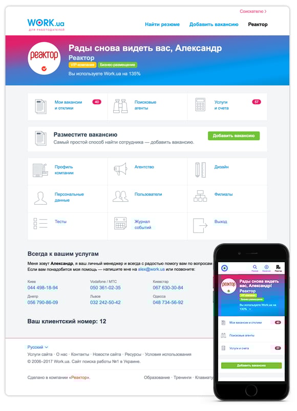 Обновились навигация и все страницы, которые видят авторизованные работодатели. Теперь эти страницы не только «посвежели», но и отлично работают на мобильных устройствах.