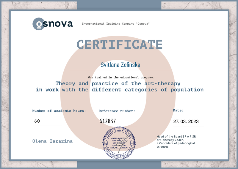 International Training Company "Osnova" —Theory and practice of the art-therapy