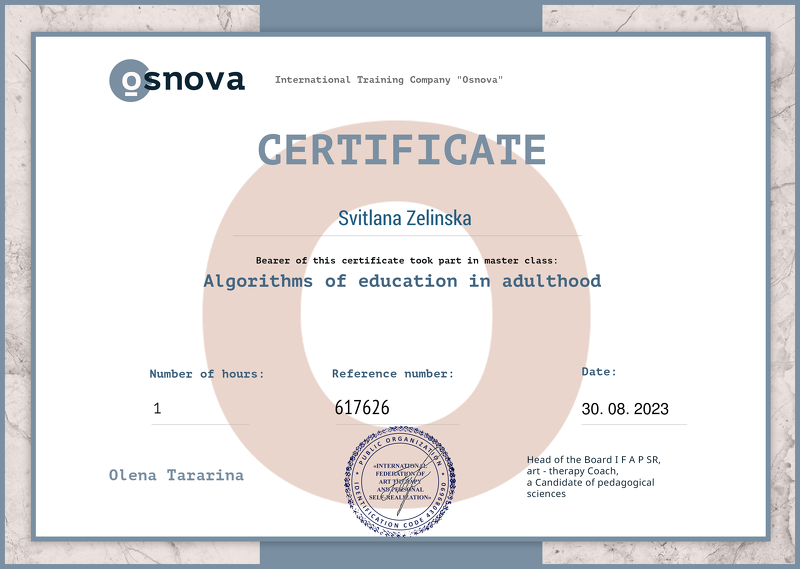 Міжнародна Тренінгова Компанія Osnova-Algorithms of education in adulthood