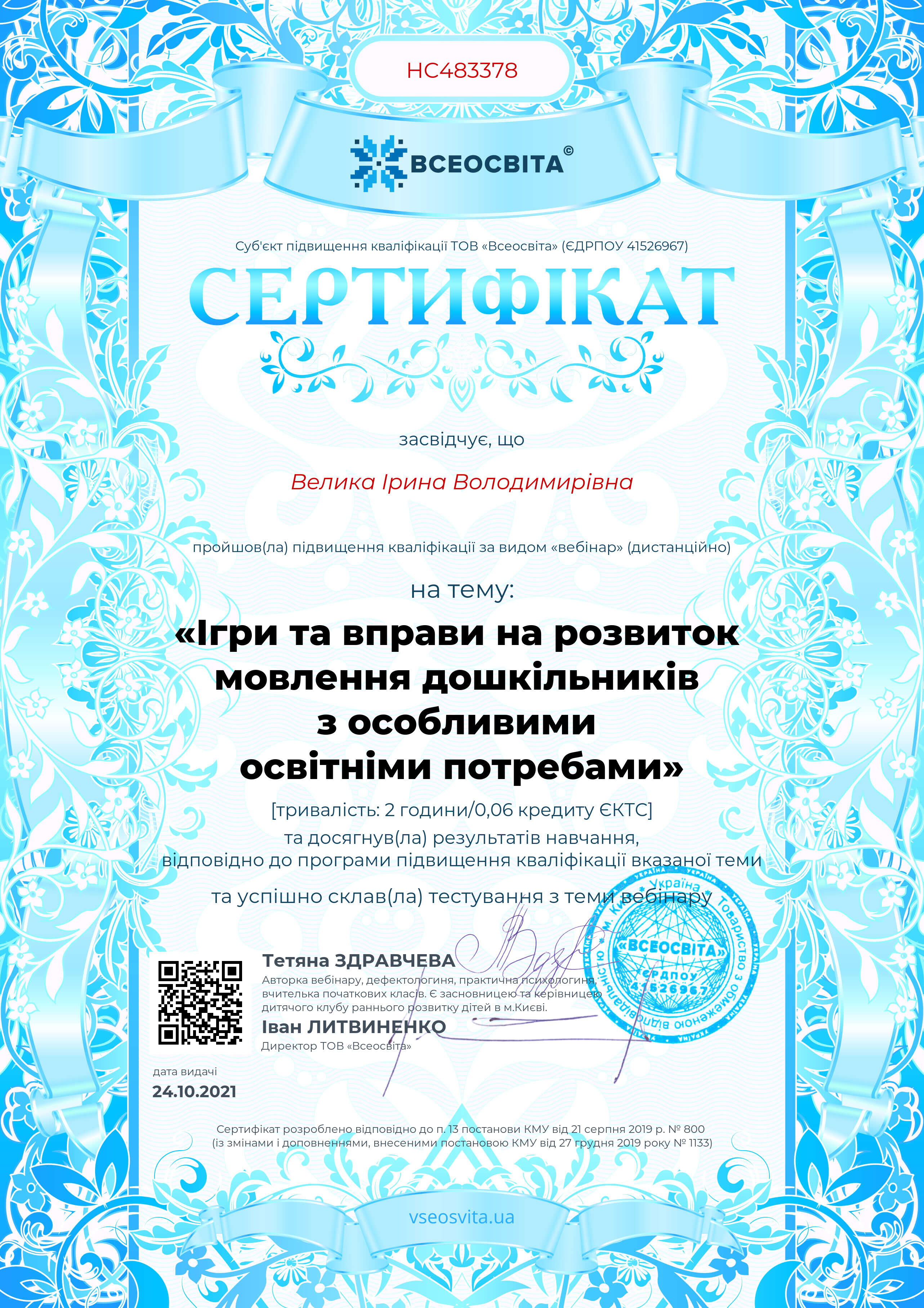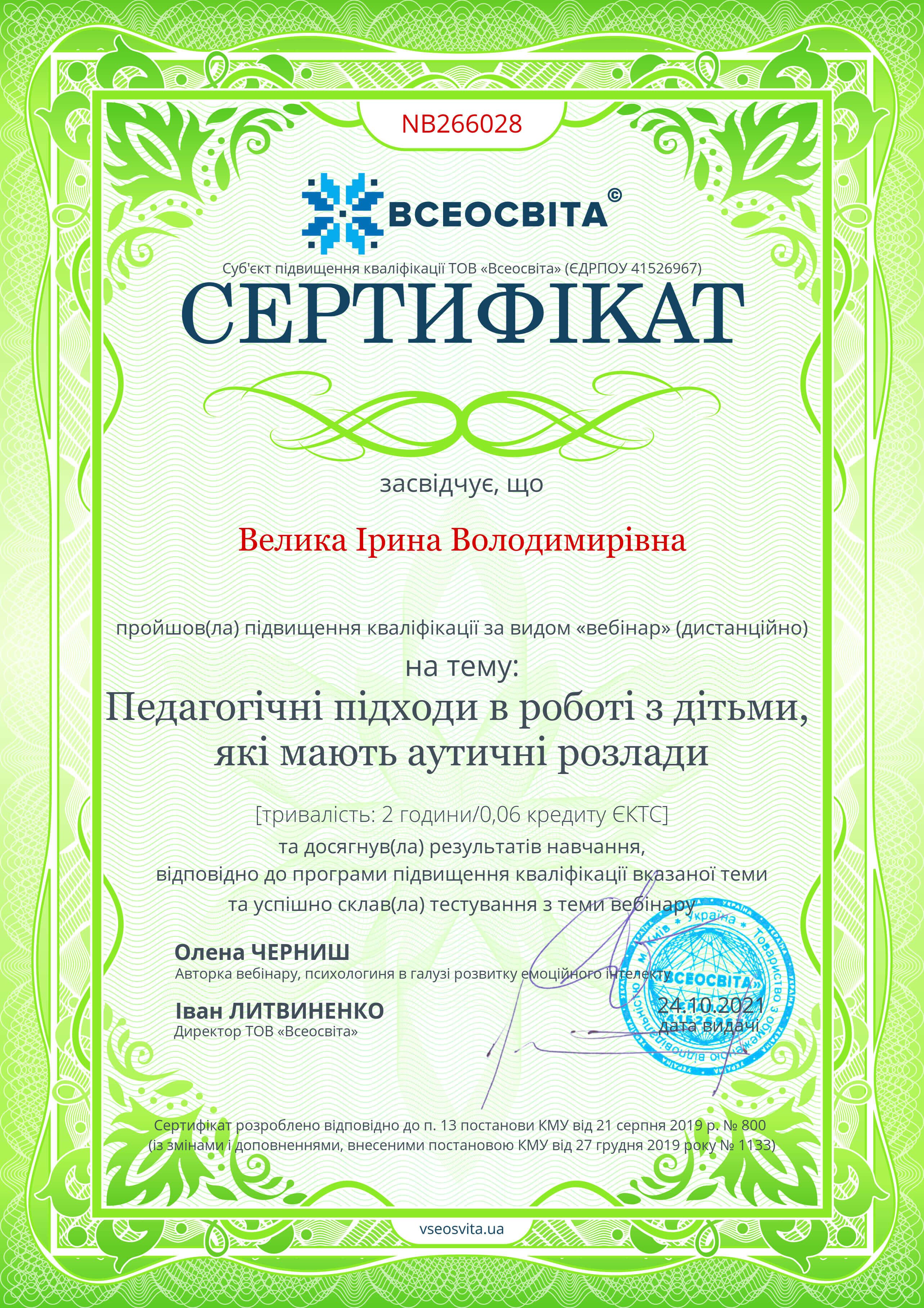 Підвищення кваліфікації "Асистент вихователя закладу дошкільної освіти"